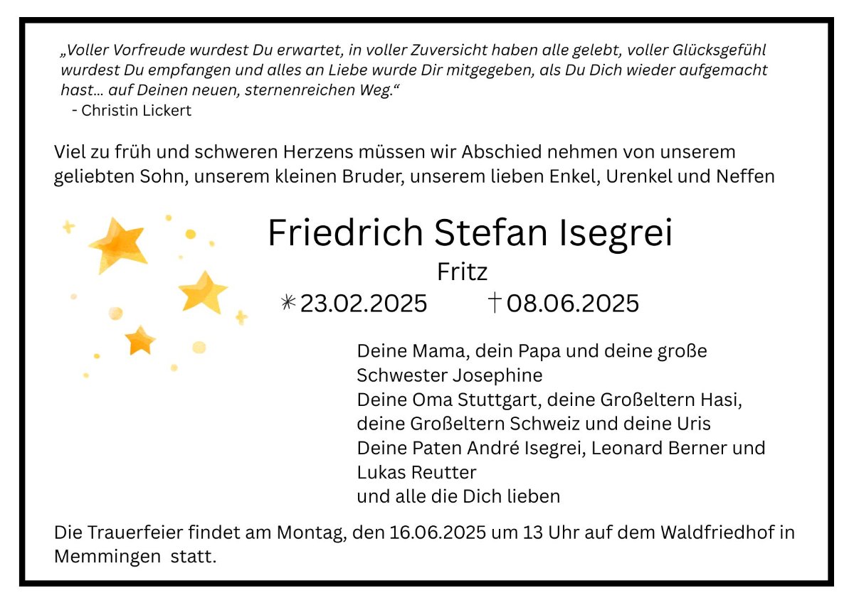 Kämpfer und wolltest das Leben genießen. Es kam anders. Ich wünsche Deinen Eltern deiner Schwester viel Kraft Gottes unendliche Liebe diesen Schmerz zu verkraften und zu verstehen.