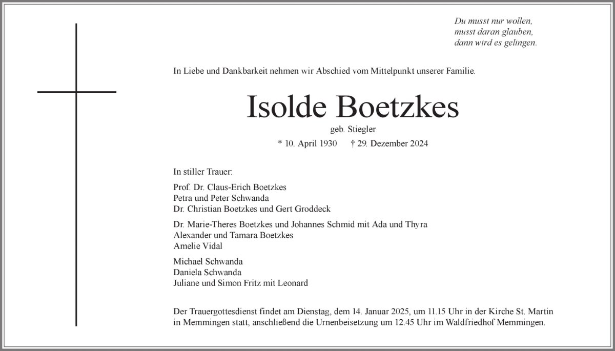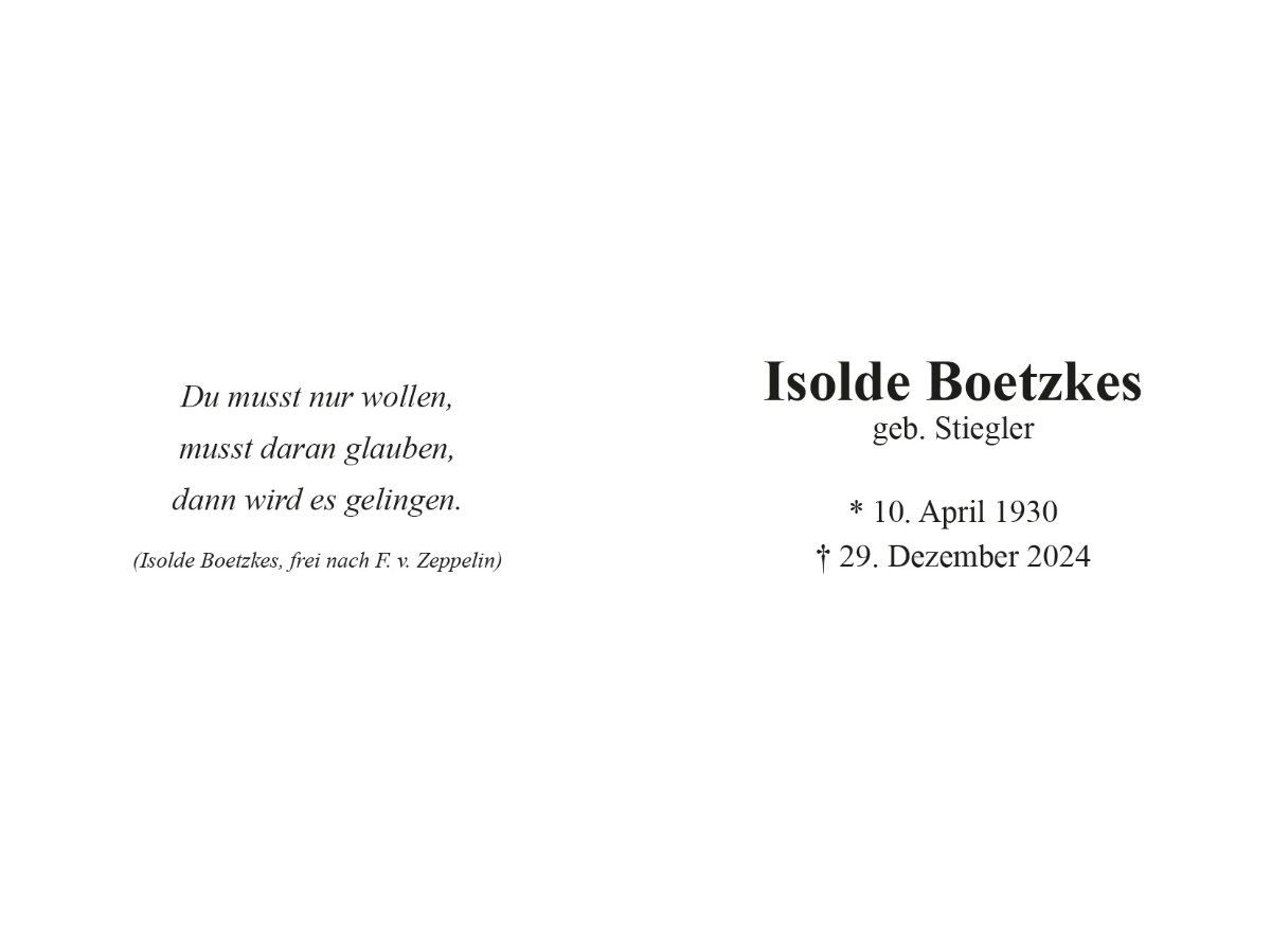 (Isolde Boetzkes, frei nach F. v. Zeppelin)