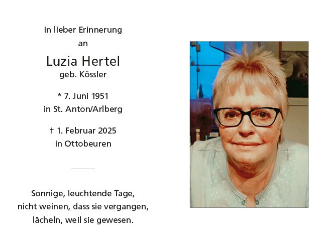 wir wünschen Ihnen für die kommende Zeit viel Kraft und dass es Ihnen gelingt, dankbar auf die positiven Erinnerungen zurückzublicken. Diese Gedenkseite möge Ihnen dabei helfen, Ihre Trauer zu teilen und das Andenken gemeinsam wachzuhalten.