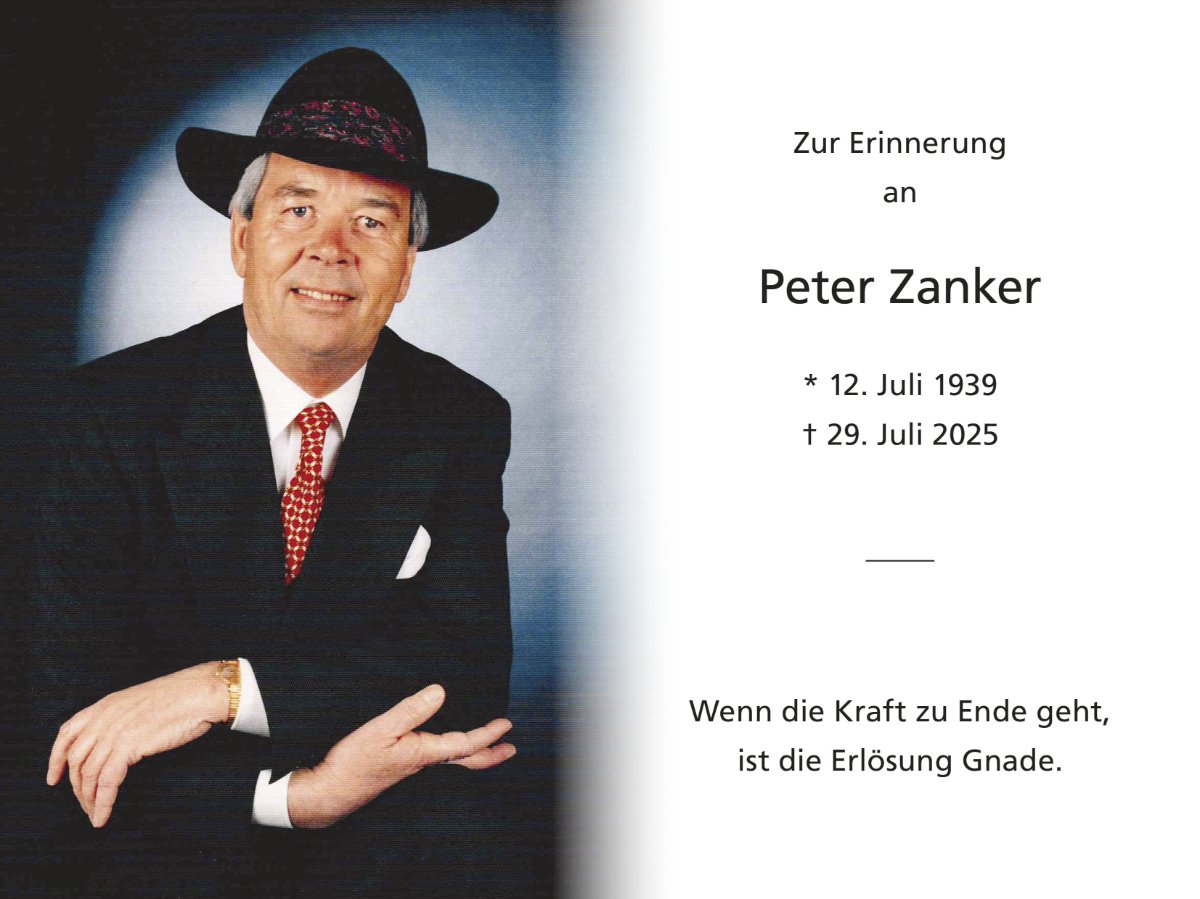 Peter Zankergestorben am 29. Juli 2025
